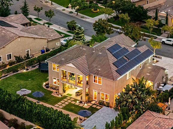 Welcome to this elegant Tuscan farmhouse estate, ideally situated on a quiet double cul-de-sac on almost a ½-acre lot surrounded by friendly, tight-knit neighbors. From its beautiful curb appeal to its timeless architectural charm, this home exudes refined living at every turn. Step inside the grand two-story foyer to discover stunning hardwood floors, a gourmet kitchen with premium finishes, and an open-concept family room with a cozy fireplace and custom built-ins and spacious bedroom with en suite bathroom downstairs. Expansive California doors open to a true resort-style backyard featuring an outdoor kitchen, lush tropical landscaping, full garden area, and a sparkling pool and spa — perfect for entertaining or relaxing under the stars. Plenty of living space with bonus rooms both downstair and upstairs. The property also includes a fully owned solar system, providing energy efficiency and modern comfort. Every detail has been thoughtfully designed to deliver a serene, luxurious Southern California lifestyle.