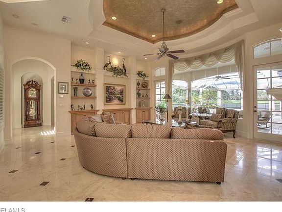 An exceptional custom estate home in Fiddlesticks Country Club. Magnificent 4 Bedroom all with suites, 5 1/2 (total) baths, den, gym, formal living room & dining room (with Fireplace). Featuring Volume and tray ceilings, exceptional grand gourmet kitchen open to the oversized family room overlooking the pool and the panoramic views. Sweeping custom staircase & private elevator plus marble & wood flooring, custom cabinets &double tray ceilings. Panoramic lake & golf course views, from lanai and second floor balcony. Elegant, welcoming, with great attention to all the details. Shown by appointment only to pre-qualified buyers. No CDD. Equity membership of $81,000 required at closing.