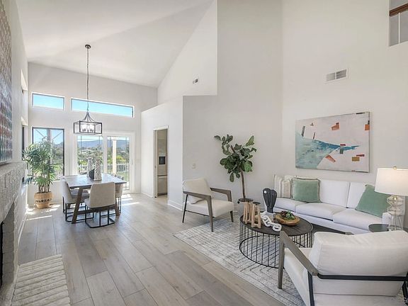 Breathtaking Views & Dramatic Ceilings! Step into this bright, move-in ready home, where soaring vaulted ceilings create a stunning cozy feel! Elegant new wood-laminate floors flow throughout, with no carpet, adding a modern, low-maintenance touch. Low HOA fees make this home even more appealing! Enjoy an expansive backyard, perfect for kids, pets, entertaining, or simply soaking in the incredible views. The inviting living room features a cozy gas fireplace with a charming brick surround and opens seamlessly to the formal dining room, offering direct access to the private, low-maintenance yard. The spacious kitchen is a chef’s delight, with abundant pantry space, stainless steel appliances, upgraded cabinets, and durable, easy-care countertops. The adjoining family room features a sunny dining nook, patio access, and rich laminate wood floors, the perfect space to gather. Upstairs, the oversized primary suite boasts a vaulted ceiling, room for a sitting or office area, an attached bath with new countertops, dual sinks, and a walk-in closet with custom built-ins. Two additional bedrooms and a full bath complete the upper level. Ideally situated, this home is just minutes from freeways, shopping, top-rated schools, restaurants, and the prestigious Bernardo Heights Clubhouse which includes swimming, tennis & more!