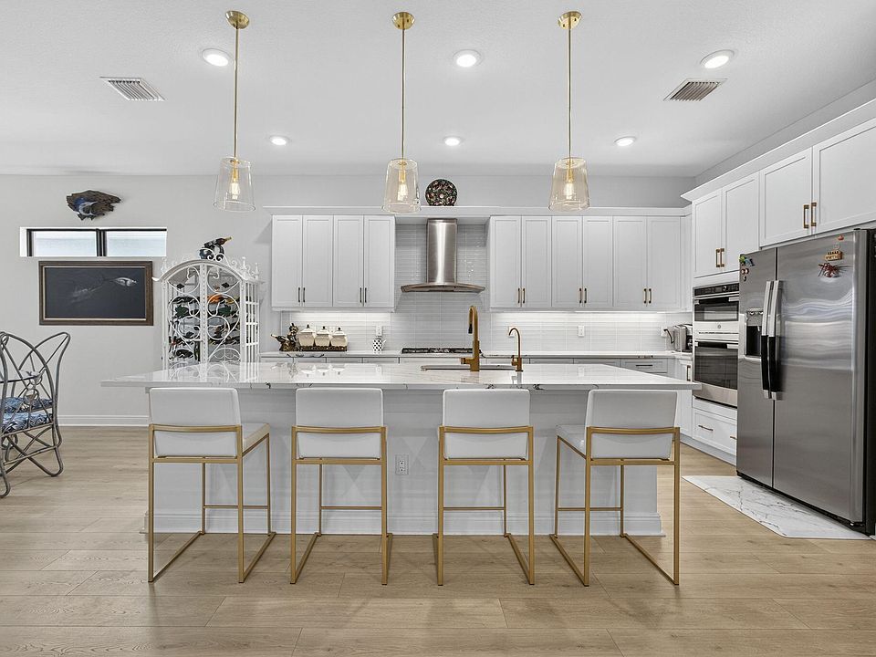 FINISHED IN 2023 - PALM BEACH floor plan with lake view includes 3 bedrooms, 3 full ensuite bathrooms and 1 half powder room. The gourmet kitchen features gas cooktop with hood, quartz counter tops, Plantation shutters throughout, screened-in extended patio, finished closets, upgraded lighting fixture and more throughout the home. Cresswind's amenities & packed activity calendar with pickleball teams, concerts & events.