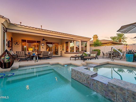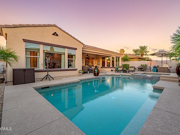 Custom T.W. Lewis Home Located in the Beautiful Gated Community of Portales.....Located in the Scottsdale of the West! Cul-de-sac Location with Green Space right at the End of the Block......Stunning Desert Oasis Backyard, 4 Bedroom/2.5 Bath Home with Meticulous Detail Around Every Corner. The Backyard Oasis offers an Oversized Rectangular Pool with a Baja Bench, Attached Heated Spa, 17 Ft Built-In Barbeque Area with Granite Countertop featuring a Large Circular Area with Room for 4 Bar Stools, Jenn-Air Barbeque, Sink & Refrigerator, Extended Entertaining Area created with Pavers that Extend all the Way to the Front Gate Entrance, Large Covered Patio Area just the Right Size for Comfortable Patio Furniture featuring a Remote Retractable Awning +++ Allowing Easy Extension for additional Shaded Area for the Pool, Spa, & Patio Area, & to Add to the Beauty Amazing Flowers, Plants, & Palm Trees Circle the Perimeter. New Heat & A/C(2024), New Porcelain Flooring(2021), Stone Fireplace(2021), Exterior Paint(2023), Interior Paint(2024), Remote Patio Awning(2020), & Custom Garage Cabinets & Epoxy Flooring. The kitchen is a Chef's Delight for sure with Oversized Island for Prepping & Entertaining, Pantry, Neutral Granite Countertops with a coordinating Backsplash that Adds a real Spark to the Room. The Warmth of the Family Room right off of the Kitchen with a Large Stone Fireplace & Designer Lighted Built-ins for just the Right Decor. Generous Size Primary Ensuite Featuring an Oversized Soaking Tub, Large Walk-in Shower, Huge Walk-in Closet, & Side Door with New Storm Door to Head Right Out to the Pool. The Entire Interior of the Home Looks Like it Belongs in a Magazine Custom Solar Shades & Solar Screens(2023) in the Entire Rear of the Home just where they are needed to Keep the Home just the Right Temperature.