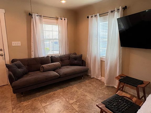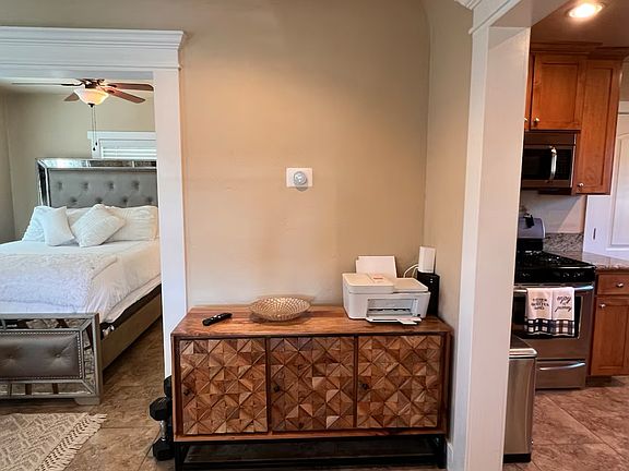Enjoy privacy and comfort in this updated studio home located behind a quiet gated entry. The property features a spacious front porch that spans the entire front of the house, perfect for relaxing outdoors. Inside, you'll find a newly updated full-size kitchen, walk-in shower, and central heating and cooling for year-round comfort.