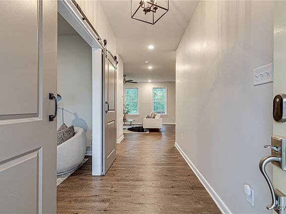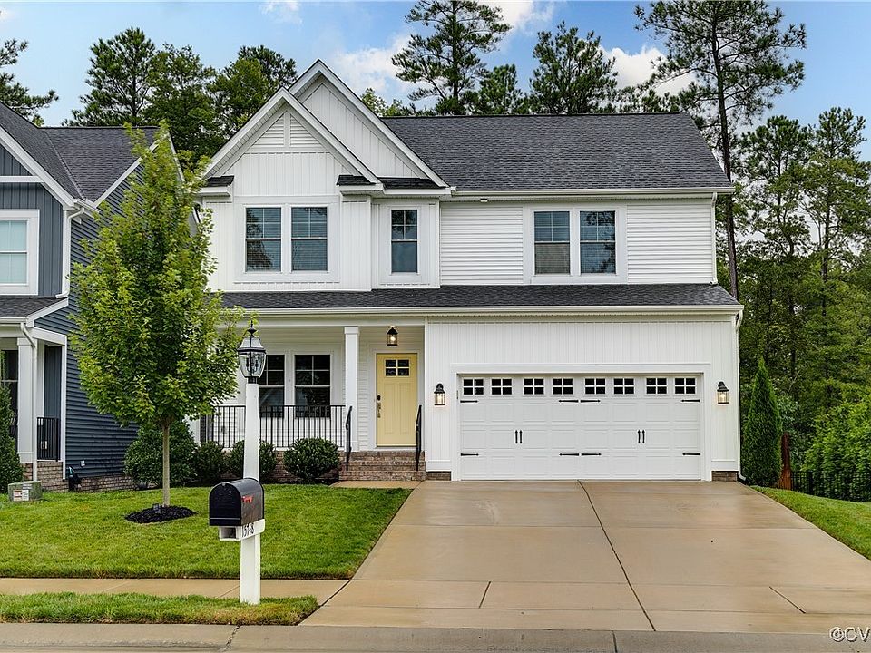 Don't miss out on your opportunity to own this stunning NewMarket at Rountrey craftsman dream! Rountrey offers an abundance of top tier amenities including multiple pools, clubhouses, playgrounds, walking trails, and so much more! Pulling up to this gorgeous property you will be greeted by the neighborhoods charming character with it's paved sidewalks throughout and each home's charming light posts. The bright yellow door and front porch welcome all who arrive to this property. Step inside to a spacious, long foyer where you'll notice new LVP flooring that continue through the first floor and fresh paint throughout the entire home. To the left of the foyer is a spacious office space with great natural lighting and view of the manicured front yard. Next is the open concept family room, kitchen, and dining area with several windows to light up the space. The family room boasts a gas fireplace with white mantel and offers plenty of space for friends and family to gather. The eat-in kitchen features granite counters, white shaker cabinets, large pantry, and island with bar top seating. Off of the kitchen is a spacious dining area with a beautiful, modern light fixture and french doors that lead out to the backyard. Also downstairs is access to the 2-car garage and a newly painted half bathroom. Continuing upstairs you'll notice new carpet all throughout the 2nd floor and staircase. At the top of the steps is an expansive loft - perfect for a second gathering space or play room! To the left of the steps is a large primary suite with en suite bathroom and newly finished walk-in closet that makes organizing a breeze! The en suite bathroom features an oversized shower, dual vanity, and large tub. Down the hallway are 2 sizable bedrooms, a spacious laundry room with plenty of space for storage, a pull down attic, and a walk-in closet in one of the additional bedrooms. The fenced in backyard backs up to a wooded area providing privacy and features a pergola that provides shade over the paver patio. Book your showing today!