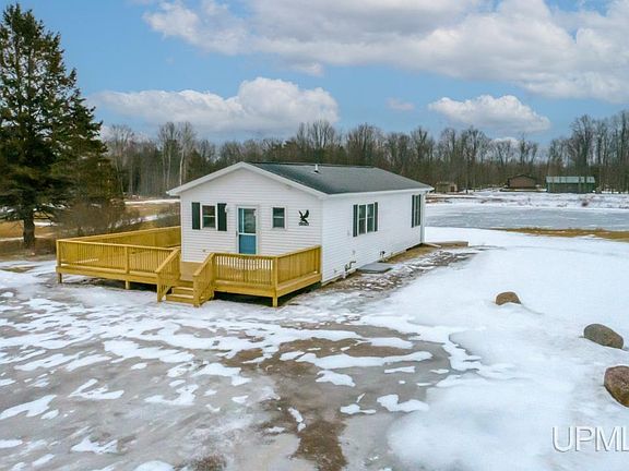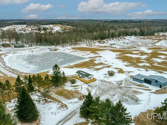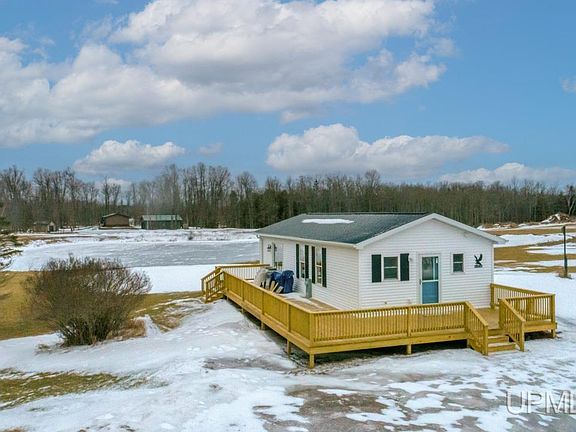On approach, as you turn off D-1 road you will wind down the private drive and cross over the meandering Houle Creek and pass through the gated entrance onto what can be your own 4 Season Shangri La. N15749 represents a unique opportunity for the sports/recreation enthusiast with approximately 14.3 acres - partially wooded. This newer constructed home - finished in 2022 - offers a main floor with open concept living space....kitchen, dining and living area and full bath. The finished lower level offers two nice sized bedrooms. There is an abundance of natural light flooding through the windows. Sliding doors off the living room lead you to the wrap around deck ideal for barbecuing, entertaining or just sitting back to take in the views, the sunsets or watch the wildlife that also call N15479 home...deer, pheasant and turkeys. Features of the home include radiant floor heating in the kitchen and bathroom. Also, enjoy the large spring fed pond for ice fishing in the winter or throw your line out in the spring/summer months from the banks. Pond is stocked with bass and blue gill. For the GOLF enthusiast...Sweetgrass Golf Course designated 2022 Jemsek National Course of the year and 2021 Michigan Golf Course of the year...is just 3.5 miles away, Highland Golf Club is 10 miles away. Are you a hunter...local deer herds are considered to have some of the largest in the U.P. boasting some of the largest trophy racks. Go hunt, go golf, enjoy floating on the pond in the summer or snowmobiling in the winter. Additionally, there are two outbuildings (attached) providing garage space, work space and an abundance of storage options. Private, secure and conveniently located between Escanaba and Menominee. All appliances are included in the sale.