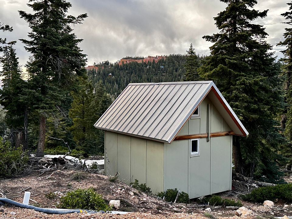 This tiny home has a cool peekaboo view of the red rock hoodoos of Zion View. Although the cabin is in the finishing stages it has everything you need to ''rough it'' comfortably - a working toilet and running water! The loft is large enough for storage or sleeping. Situated on 2 lots, there is ample room for your RV and/ or a future cabin or garage. This area is bliss for the outdoor enthusiast. Hiking, mountain biking, fishing, ATVs and snowmobile riding are just a few of the many reasons the area is quickly growing. A septic system and water meter are installed. Power is nearby or could be provided by generator or solar.