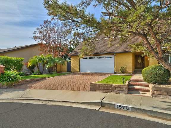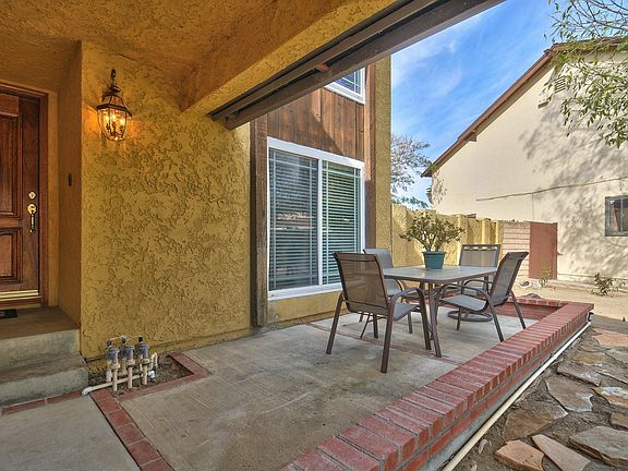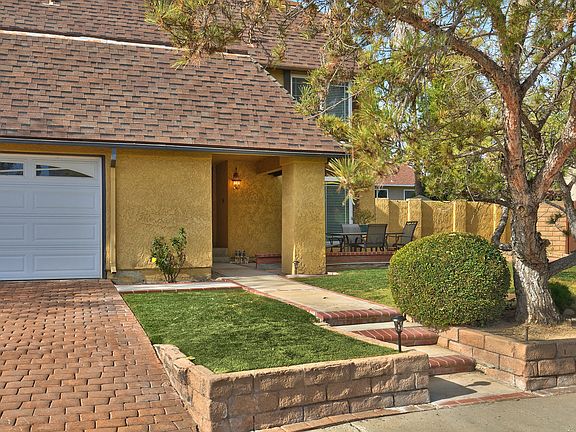 Welcome to this lovely 4 bedroom, 2.5 bathroom, 2124 square foot pool home located on an 8280 square foot cul-de-sac lot in Central Simi Valley. Inviting front door has inlaid glass, ceilings have been scraped, beautiful crown molding and dual-pane windows & doors. Spacious living room with rounded brick fireplace and formal dining area. Lots of counter space in the kitchen with newer stainless steel appliances, garden window, white cabinets, tile counters and double sink. Adjacent family room with lots of windows and large slider door to the backyard. Half bathroom downstairs. Large master bedroom with walk-in closet and en-suite master bathroom with large shower with glass-enclosure. There are 3 nice-sized secondary bedrooms and hall bathroom which has combination bathtub/shower. 2-car garage. Wonderful entertainers' backyard has covered patio and swimming pool with thermal cover. This is the one you've been waiting for. Welcome Home!