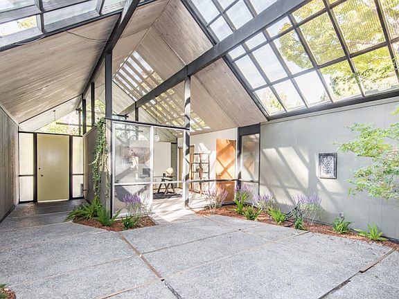 Classic 1968 Eichler original floorplan in sought after Fallen Leaf Neighborhood. The atrium design shows the epitome of indoor/outdoor California living. The floorplan with 4 bedrooms in one 1 wing & a separate 5th bedroom, perfect for guests or au pair. The bonus room off the kitchen is perfect for hobbies or an office. Enjoy the backyard with a pool from the LR, DR, & Master Bedroom. Easy access to the yard from the kitchen.