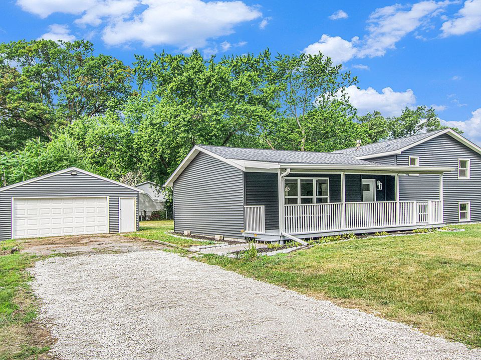 Just minutes away from Indiana Dunes National Park and the shores of Lake Michigan. This beautifully renovated tri-level stunner is the whole package offering the perfect blend of style, comfort and location. The main kitchen and great room form a vibrant open living space, centered around a grand dine-in island in a brand-new chef's kitchen with stainless appliances that remain, along with an updated A1/2 bath. With 3 bedrooms on the upper level, they all have fresh paint and new carpet including full bath. The lower level is a large recreation room, laundry room where W/D combo stays, plenty of storage, utility room and an additional room to use at your pleasure. Stepping outside you'll also find a wonderful covered front porch and spacious backyard. The property includes a detached 2-car garage, ideal for vehicles or storage. Updates included but not limited to roof, siding, flooring, lighting and windows.