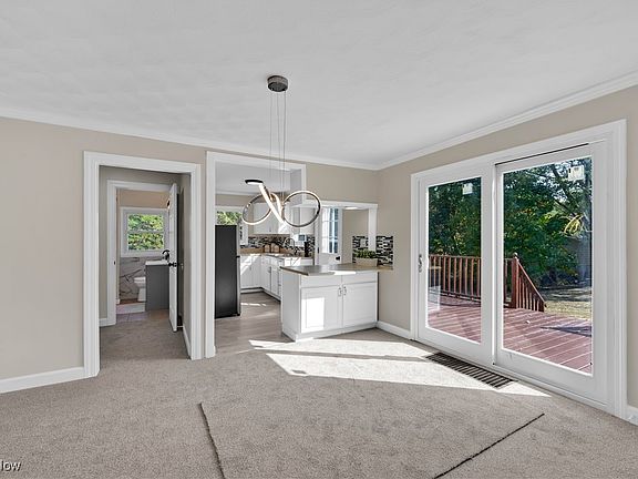 Welcome home to this thoughtfully updated, turnkey residence offering ample space, modern comforts, and convenient living both indoors and out. The entry opens to a spacious front porch and a bright living room that flows seamlessly into the dining area and updated kitchen, featuring brand-new appliances. The home includes two bedrooms on the first floor and an updated tiled full bathroom, with brand-new carpet and fresh interior paint throughout. Upstairs, a large primary bedroom awaits with two ceiling fans and a generous walk-in closet. Exterior highlights include fresh gravel driveway with extra parking in the front of the home, enhancing curb appeal and practicality, a large side deck and a front covered porch with a brand-new epoxy finish. The large flat, open backyard is ideal for enjoying time outdoors. The basement is dry, with a brand-new epoxy floor finish and a walk-out to the exterior backyard through a large commercial-grade door; it also includes a full bathroom with a walk-in shower in the lower level. A brand-new air conditioner was installed in September 2025, ensuring year-round comfort. This property offers a move-in-ready, open-concept living space perfect for entertaining and everyday living.