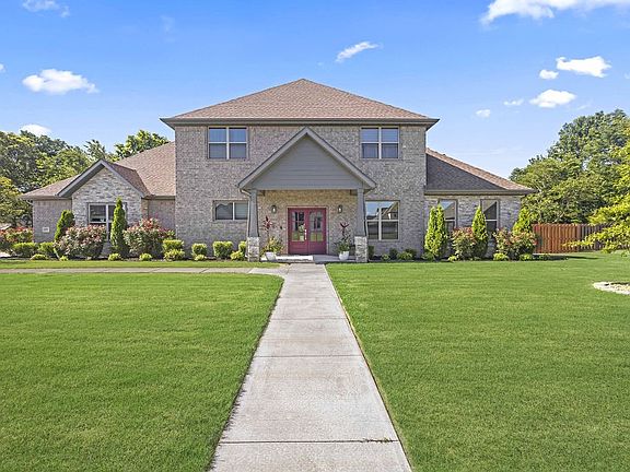 Stunning home nestled in the desirable Elmdale Lake Estates! Immaculate home boasts all amenities one could ask for with glorious natural light pouring through all spaces. Open layout flows seamlessly giving functionality to both entertaining and daily living. Gourmet kitchen is equipped w/ custom cabinetry, walk-in pantry, center island, s.s. appliances, pot-filler, built-in icemaker and reverse osmosis filtration system. Spacious bedrooms w/ bonus room provides room for all. Luxurious primary suite has his & her closet systems, dual sink vanities with makeup counter, soaking tub and sep shower. Discover your own private oasis in backyard, featuring spectacular pool, complete w/ captivating waterfall feature, vibrant LED-infused bubblers, laminars, and all controlled by an app! Short walk to the serene shores of Lake Elmdale, w/ boat ramp only moments away. Wonderful location w/ convenient access to I-49. Brush Creek Golf Course and Shaw Family Park are approx 5 minutes away. Perfect balance of luxury and comfort!
