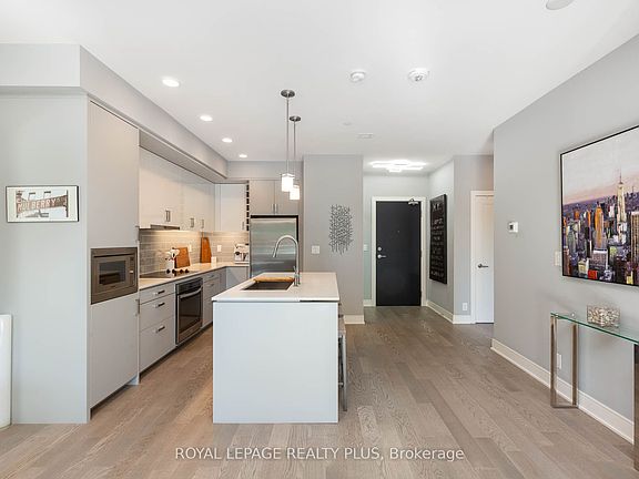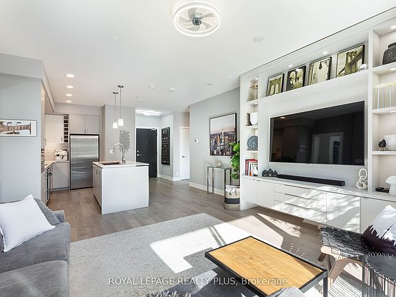 Welcome to turnkey luxury for less in one of South Mississauga's most desirable communities. This sunny west-facing suite has unobstructed views of parkland and offers a rare blend of privacy and convenience; located just steps to the lobby, building amenities and the elevator to your two oversized parking spots. Inside, 5-in engineered hardwood floors and open sightlines create a seamless flow from kitchen to living to balcony. Expansive windows flood the suite with natural light, while motorized blinds offer privacy and shade at the touch of a button. A custom media unit with integrated display lighting anchors the living area; an upscale focal point that also maximizes storage and display space. The sleek kitchen features two-tone cabinetry, built-in appliances and a large island; perfect for casual dining or entertaining. Two large bedrooms sit on opposite sides of the suite, with the primary retreat offering a walk-in closet, balcony access and a spa-like ensuite with two sinks and a glass shower stall featuring Kohler fixtures. Beyond the front door lies The Craftsman; a landmark for the city thanks to its Frank Lloyd Wright-inspired design and forested setting of Birchwood Park. This luxurious complex has many useful amenities and elegant common spaces but what makes it truly unique is the sense of community among its residents, with neighbours frequently gathering for events and celebrations thanks to a vibrant social club. Step outside to discover Clarkson Village with its boutique shops, cafés, and some of Mississauga's finest dining. Within minutes you'll reach Jack Darling Park, Rattray Marsh and countless trails, plus nearby MiWay transit stops, GO stations, and major routes like Lakeshore, Southdown and the QEW make commuting a breeze. With its stylish finishes, smart upgrades, unbeatable location and abundance of convenience, Suite 105 at The Craftsman represents more than just a new condo; it's luxury living for all in the heart of Clarkson.