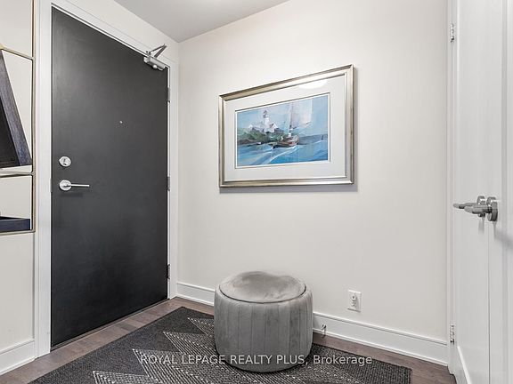 Rich quality features and upgrades throughout this gorgeous corner unit with unobstructed southeastern views! The entry foyer leads to an open private space that is ideal for a computer center. Living room floor to ceiling custom built wall unit has electric fireplace, TV outlet, storage plus indirect lighting over open display cubes. Walk-out to balcony from corner dining area, beautiful large surround windows. The Kitchen is marvelously complete! Stainless steel appliances, double door fridge, pot drawers, extra shelves, cupboard organizers, granite counters, large island plus a built-in credenza with upper shelves. Primary bedroom, 3 pc ensuite, organized walk-in closet and blind on remote. This split bedroom model also has a 4 pc bath with jetted tub. Full size washer/ dryer. Hardwood throughout. Parking space, electric car charger, locker on suite floor. Conveniently located this well designed 2-bedroom condo is filled with custom upgrades and so much more!