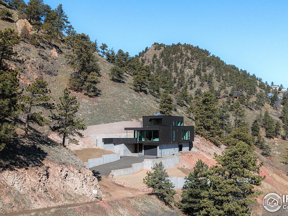 A masterfully modern foothills lifestyle awaits in this spectacular new-construction Pine Brook Hills showpiece designed by architect Nick Fiore of Flower Architecture. Featuring exquisite contemporary design and breathtaking views, this new construction home is a refined sanctuary just minutes from Boulder, Colorado amenities. Inside, a soothing palette of warm materials is accompanied by thoughtful illumination and premium finishes. Cedar tongue-and-groove ceilings soar above wide-plank white oak floors, level 5 drywall, solid-core doors and floor-to-ceiling windows. The front door opens on the lower level, where a large foyer boasts bench seating and a row of mudroom storage. The main level is designed for relaxing and entertaining, featuring a great room with a chic circular wood-burning fireplace, and floor-to-ceiling and wall-to-wall windows frame views that sweep across the Boulder skyline and beyond. The work-of-art open kitchen features custom whitewashed oak cabinetry and quartz countertops surrounding a fleet of Italian Smeg and Fisher & Paykel appliances. The home's top floor is dedicated to the private owner's retreat, featuring a luxurious bedroom with a linear gas fireplace that opens to a stunning private deck. Escape to the en-suite spa bathroom to enjoy a large wet room shower and freestanding soaking tub, a private water closet and a floating terrazzo double vanity. A facade of exposed architectural concrete and fire-resistant standing-seam steel siding creates a striking juxtaposition with the surrounding landscape, while a long driveway and attached two-car garage add abundant parking to this hillside Boulder beauty. This phenomenal home is just minutes from world-class trails, Wonderland Lake, North Boulder & Downtown/Pearl St amenities.