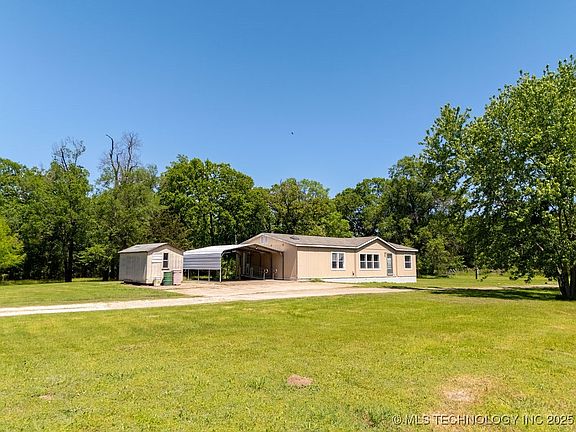 If you’ve been dreaming of peaceful country living surrounded by nature, this 3-bedroom, 2-bath home on 7.31 unrestricted acres might be exactly what you’re looking for. Tucked away at the end of a long private drive, the property greets you with two picturesque, spring-fed ponds you’ll drive between as you arrive—creating a truly unforgettable first impression. Imagine fishing in your own front yard, watching the sunrise reflect off the water, or spending quiet evenings with the family by the pond’s edge. The home offers a comfortable and functional layout with space to grow, while the large covered back porch invites you to unwind and take in the peaceful surroundings. Per Seller, within the past year the plumbing pipes, roof, ac and skirting around the home have been replaced. With three carports, a storage building, and two fully equipped workshop buildings, there’s room for all your hobbies, tools, and outdoor gear. Located just minutes from Choctaw Casino but a world away from the noise, this property offers unmatched privacy and freedom, open skies and fresh air. Whether you’re starting a family, looking to slow down, or searching for the perfect weekend escape, this nature-filled retreat is ready to welcome you home. NOTE: The home lies within floodplain. Buyer to verify flood insurance requirements and costs.