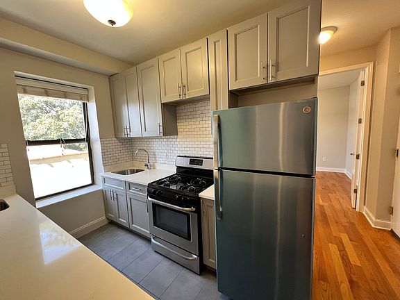 Brand new gut renovated, drop dead gorgeous, quiet, clean, very bright & sunny large 1 bedroom apartment with a open kitchen includes top of the line stainless steel appliances including refrigerator and range, white granite counter tops, ceramic tile flooring with subway style tiled back splashes, 42" custom made cabinets with self closing doors & open views.