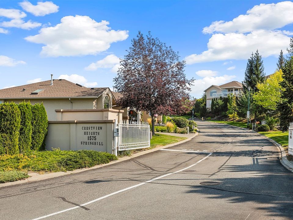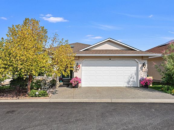 This was the builder’s choice lot in Crestview Heights, a beautifully maintained bareland strata complex in a private cul-de-sac with limited traffic. Bordering greenspace near the top of the community, this home offers panoramic views of the North and South Thompson Rivers, uninterrupted views of Mt. Paul, and city views from the covered deck without traffic noise. Completely finished up and down by the developer, it features a level-entry two-car garage and a walkout basement leading to a private patio where the lawn is maintained for you. The main level includes the primary bedroom and laundry for convenience, while updates in recent years include a new kitchen, appliances, hardwood floors, furnace, and central air. With RV parking and visitor parking available, and a low-maintenance lifestyle for $250/month in this secure gated 55+ community (one owner must be 55+), this is a rare opportunity. One dog or one cat is allowed, with no rentals. Quick possession available.