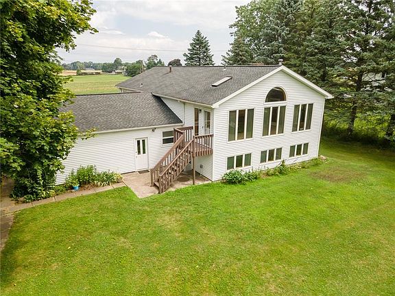 Never before available, that may have no equal Original owner loving maintained for 53yrs Rare one acre parcel with circular drive, two curb cuts on State Rd. Detached garage is 1456 sq. ft. stick built with a metal roof 8' commercial grade insulated overhead door, shop lights bulk head storage, with office space heated with wood-stove. Attached garage is 546 sq ft that has finished walls epoxy floor, keyless entry, newer insulated door & opener. Slate flooring in the open foyer leads to split stairs front and back great feature for multi generational living. Double door entry into southern facing sunroom Anderson casement windows. So much space! Gleaming oak hardwood floors, maple doors. Walking distances to State Rd School. Tear off roof 2008 Hi Eff furnace, Prep for C/A Full Masonry woodburning fireplace plus a Lopi Woodstove in lower level. Solid well built home ready for your 2020 finishes. RG&E avg $150 month! Delayed Negotiations till 8/03