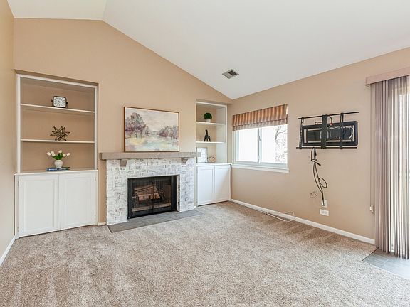Just the home you are looking for! Welcome to this terrific, light filled two bedroom condo located in sought after Woodside. Large family room with vaulted ceilings, wood burning fireplace and built in shelving opens to the dining room and private balcony overlooking beautiful green space with trees. The bright, white kitchen new in 2017 with quartz countertops and white subway tile backsplash and pantry is perfection. Primary bedroom with walk in closet, large second bedroom and updated bathroom with slate tile. Fantastic laundry room with a full size washer & dryer and storage, newer Andersen windows throughout the entire unit. Enjoy Container Store shelving in the pantry, primary closet and the laundry room. Inside access to the garage with additional storage, great location close to shopping, Forest Preserves, Cantigny and Atten Parks. There is nothing else like this on the market and won't last long! Investor friendly!
