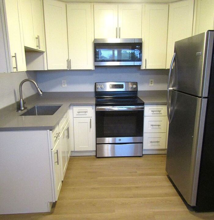 Downstairs apartment in a small complex located in North Eastern Santa Rosa; close to parks, schools, freeway access and walking distance to Whole Foods Market. This unit features new laminate flooring throughout the living areas. The updated kitchen provides lots of cabinet space; stainless steel electric cooktop; microwave and refrigerator. Nice sized bedroom situated in the back of the unit. The bathroom has tile flooring, a large vanity with plenty of counter space, shower/tub combo and good closet storage. One assigned parking space provided; shared onsite laundry in complex.