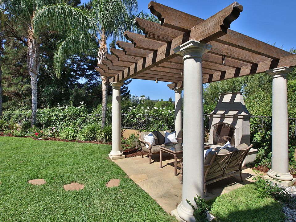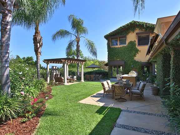 South of the blvd gated Spanish/Traditional w valley views & easy freeway, west side & valley access. This resort style home offers privacy & security for your confidential clientele. Entertainers & home bodies will both appreciate the open & bright flowing floor plan. Travertine tile & dark wood floors run throughout. Formal entryway. Large foyer/sitting room & the formal living room featuring high ceilings, accent lighting & French doors to the back yard. The family room offers a large fire place & a private patio with tree top valley views. The gourmet kitchen has granite counters, center island, prep sink, stainless appliances including a 6 burner cook top, double ovens, custom wok station, warming drawer, huge built-in fridge/freezer & a large pantry + backyard access. Spacious formal dining room. 5 bedrooms including a secluded bedroom with attached office perfect as a maids or guest quarters. The romantic master has a fire place, large walk-in closet, custom crown molding & backyard access. The master bath has double sinks, large tub & separate shower. The backyard has a central sitting area with fire place, several grassy yards, BBQ & a large pool & spa both with valley views. All this plus indoor & outdoor built in speakers, 3 car garage & CCTV.