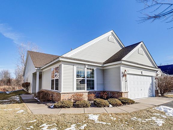 Get ready to fall in love! Beautiful, spacious, detached townhome in sought after Water's Edge Community. Brand new carpet and paint makes this home ready to move in tomorrow. Large, inviting eat-in kitchen is open to dining/living room. Large windows provide plentiful sunlight into the substantial living room with gas fireplace. Living room is adjacent to cozy sun room that walks out to patio which enjoys the privacy and views of a peaceful wetland. Primary bedroom en-suite includes oversized private bath and walk-in closet. Two more bedrooms with guest bath on opposite side of home provide desirable privacy. Water's Edge also gives you full access to community center complete with outdoor pool, kitchen/party room, fitness area, playground and more. This home is worth a look. See it this weekend!