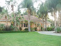 Over 1 Acre of resort like living! Long, private, tree lined driveway with electric gate. Sparkling pool & spa enclosed with an abundance of lush lawn and fruit trees including, avocado, orange, lemon, peach and cherry. Formal living and dining room, family room with wet bar, double fireplace and vaulted ceilings. Spacious, open kitchen with breakfast bar and buffet counter. Master bath with roman tub overlooking the master porch and beautiful grounds of mature palm trees and green belts. Property has plenty of space to add your horses and recreational vehicles. A MUST SEE!