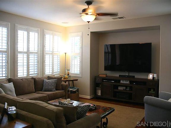 Perfect Family Home!! Paid off SOLAR (low/no electric bill to tenant), no maintenance yard (front and side with BBQ), 2 car attached garage with storage shelves, walkable to del sur elementary school, access to community pools, events and a huge list of upgrades!Spacious 3 Bed / 2.5 Bath home with 2 living rooms and separate dining room located in the desirable Cassero Del Sur neighborhood.Gorgeous kitchen with granite countertops, brand-new stainless-steel appliances. Family room has a fireplace and home theater package ready for entertaining. Dining room has an attached patio overlooking the front yard to enjoy the outdoors. Master Bedroom has a fully upgraded walk-in closet with tons of storage space. Spacious backyard with a built-in BBQ and low-maintenance artificial turf perfect for entertaining! Walking distance to Del Sur Elementary School, Kristen Glen Park, and Pool. Minutes from Del Norte High School. Enjoy Del Sur community events and amenities including 11 solar-heated pools, 14 private parks, and 18 miles of hiking trails. Tenant pays all utilities (Gas, Electric, Water, Sewer, Trash) Non-smoking property, pets may be considered with owner approval.