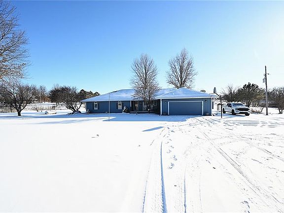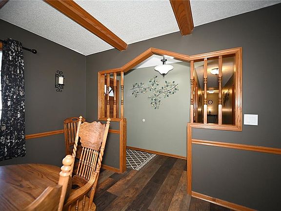Welcome home to county living near city amenities. Just minutes away from 435 and 7 highways. This home has a great open feeling with recently installed LVP flooring throughout entry, dining room and kitchen. Beautiful wood beams in both the dining room and living room/great room add so much character. Lots of storage space in kitchen with a separate pantry. Newer stainless steel appliances, double oven!. Large farm sink with windows overlooking the 2.6 acres. Current owner had had chickens, pigs and goats in the past still leaving plenty of area for growing your own produce. Master bedroom is oversized with sitting area, walk in closet and an attached bath with jetted tub and separate shower. Laundry is located off kitchen as well as a 1/2 bath. Bedrooms are all great sizes. Lower level has 2 finished rooms, one could be an office/hobby room and the other would make a great 5th non-conforming bedroom or exercise room. The unfinished area of the basement has loads of built in storage with plenty of space to finish to your liking. Seller had foundation work done and added an egress window at that time. Well equipment was updated 1 year ago. Outbuilding is 30x40 and has a cooling/heating unit, concrete floor and is also plumbed for propane. So much to love about this home! It is definitely a must see!
