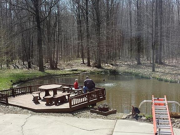 AMAZING SETTING!!! Vacation daily in this beautiful 3 bedroom ranch with all the extras. Signature windows from kitchen and gathering room reveal stunning views of the fully stocked pond which has its own deck on this wooded lot. Large master suite, custom kitchen, gas fireplace, finished basement with half bath charm the inside. The serenity of the outside setting is awesome. All professionally landscaped, the multi tiered back deck has a gazebo and swimming pool. A large 2 level barn has been transformed into additional living space with heat and central air. An additional garage sits on the back property. You must see to appreciate this outstanding home with all its unique extras.