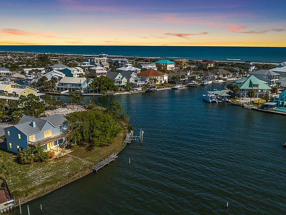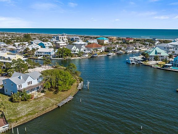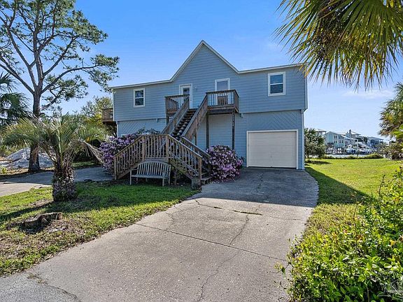 Welcome to Perdido Key Coves, a community both beach lovers and boating enthusiasts can call home! 15760 Bowlegs Reef is located amidst 290 acres of unspoiled State Park land, so residents can appreciate a serene Gulf horizon without any high-rises blocking the view and enjoy owner deeded beach access to the Perdido Key State Park white sand beaches just across the street. Situated on a waterfront .33 acre lot at the wide mouth of the canal, 15760 Bowlegs Reef has an impressive 175 feet of water-frontage and provides easy access to Old River and the Gulf of Mexico. The main living level includes three bedrooms, a kitchen, and a living/dining space with soaring vaulted ceilings. The kitchen has two pantries and ample cabinet storage, while the main bedroom features a walk-in closet, double vanity, and a beautifully updated tile/glass shower. Step outside onto the wraparound deck, accessible from both the living room and primary bedroom, and bask in the tranquil waterfront surroundings and vibrant sunset vistas over Old River. The lower level of the home features a versatile family room with a cozy wood-burning fireplace, a third bathroom, a spiral staircase, two garages complete with workshop area and shelving, a tackle room, and a utility room. An elevator allows for easy accessibility between the two floors. Recent updates include a new roof in 2021, two A/C units in 2019/2020, updated decks in 2022-2023, new dining room and guest room doors in 2023, fresh exterior paint in 2023, and new vinyl plank flooring and paint in the family room in 2023. In 2024, the upper living area was painted a pleasing neutral color, and new carpet was installed in all bedrooms. Whether you seek a primary or second home with the coastal tranquility only Perdido Key can give or a rental investment with deeded beach access, community tennis and pickleball courts, and low HOA fees ($400/year), this home truly has it all! A 1-Year Home Warranty is being provided for added peace of mind.