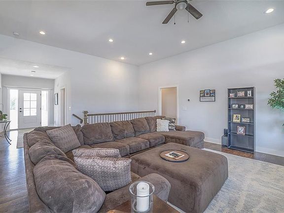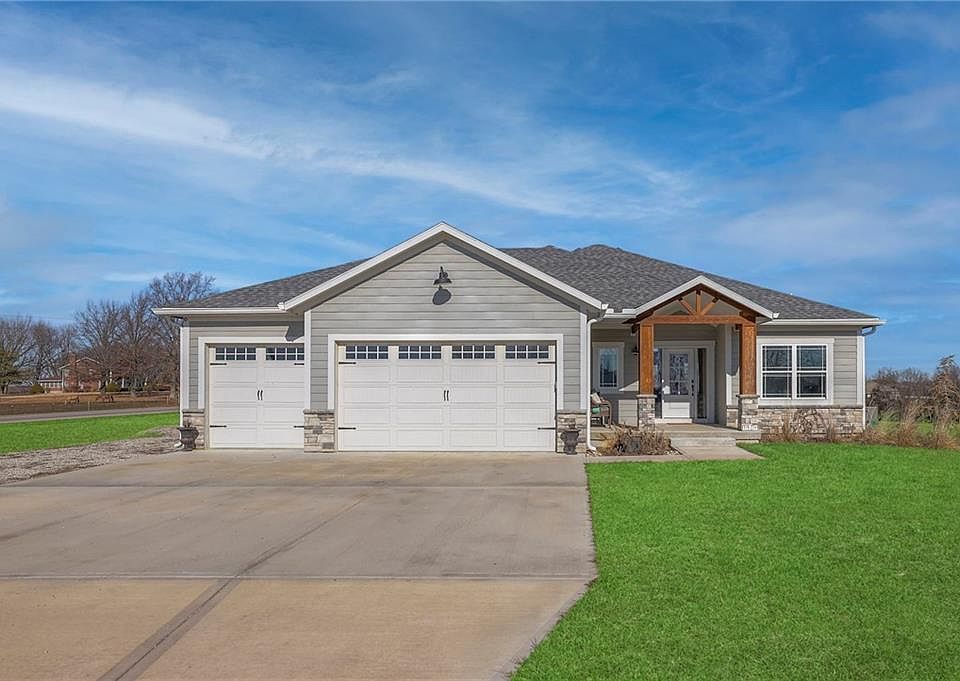 Priced $25K below tax appraisal and way below new construction prices, this is a deal! Welcome home to your new retreat! This 5 bedroom reverse 1.5 story sits on nearly 3 acres and is ready for you to call home. Lightly lived in, this home was built 2 years ago with high ceilings, an open layout and sunfilled spaces. Comfortable great room with stone fireplace is open to the kitchen and is the heart of the home. The kitchen features a large granite island, spacious walk-in pantry, hood fan and gas range. The breakfast room is surrounded by windows to enjoy nature and the lake view through the trees. A covered deck with fireplace is accessible from the primary bedroom and the kitchen and offers a backyard lookout with peaceful lake views. The primary suite offers a wall of windows and a door to the covered deck and fireplace. Double vanities with granite tops and rich custom cabinetry, tiled dual head shower and roomy closet. All baths with granite tops. The laundry room adjoins the primary closet for extra convenience. Off the 3 car garage entrance is a 1/2 bath and boot bench. Also on the main floor, the fifth bedroom makes a perfect office or den. The finished walkout lower level is a great spot for entertaining with a huge projector wall, granite wet bar with island, a full bath and 3 spacious bedrooms. Two bedrooms each have their own vanity with a common space shower, the third bedroom has a private bath with granite vanity and shower/tub. Step out to the covered patio for another fresh air relaxing space overlooking the flat backyard with lake view.
