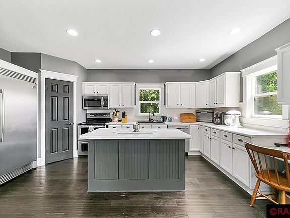 Charming Modern Farmhouse on Half-Acre Lot. The open floor plan features the kitchen with a large center island for easy meal prep, stainless steel appliances, commercial-grade refrigerator, walk-in pantry, a large living/dining area, built-in desk area ideal for both homework or working from home. A flexible space that can be used as a porch, office, family room, or den. Along with the main floor laundry and a half bath. Upstairs you will find 3 bedrooms and an extra large bathroom. Heated two-stall detached garage with workbench and outdoor patio area with firepit. Notable updates: all new wiring (200 amp service), plumbing, ductwork, 98% 2 stage LP gas furnace, central air, mini split with heat pump in the primary bedroom, heat pump water heater, double range/oven, microwave ,dishwasher, iron filter for well, water softener, retro foam insulation, house wrap/siding, shingles. Just a short drive south of Mankato