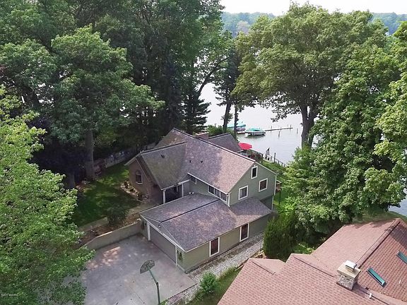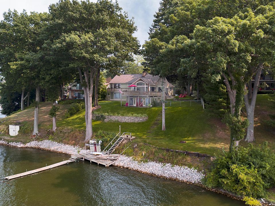 PRIME SPRING LAKE FRONTAGE-133' OF THE MOST AMAZING VIEWS in this 4 bedroom 2 bath home located in Spring Lake School District on a cul-de-sac street! Start with the welcoming foyer that leads to the spacious great room featuring cathedral ceilings, wall of windows, and a relaxing wood burning fireplace with sliders to the deck overlooking the Lake! The gourmet kitchen offers top of the line stainless steel appliances, maple cabinets, granite island/snack bar surrounded by solid cherry hardwood floors. The upper level boasts 3 bedrooms including the master bedroom with double closets, hardwood floors and door to balcony to enjoy the great views & Lake Breeze! The lower level features large cozy family room, bedroom with fireplace, full bath with tiled shower, Nice Laundry room, workshop and an oversized finished two stall heated garage. Call for your private tour today.