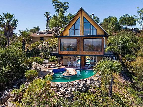 This amazing home is located in the highly desirable West Ramona Neighborhood. Home is 1460 sq ft, 3 bedroom 2 bath is the actual sq ft, however, there is about 800 sq ft on lower level that is a 2 bed/office with a bathroom. Buyer needs to verify all building permits BCOE. Sit on any of the decks or in this very private pool to capture the beauty of the surrounding mountains and valleys of Ramona. 15 min drive to Poway and located very close to the Historical Downtown Ramona and multiple wineries nearby. Carport parking and area for RV Parking as you pull up the driveaway. Solar is located on garage and is owned. Propane services the pool and water heater. Home is also on septic. This home will go quick.