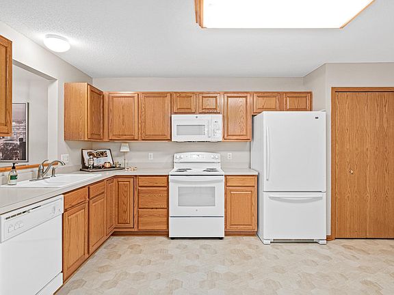 Immaculate End-Unit One-Level Living Townhome on a Premium Lot! Welcome home to this beautifully maintained, move-in-ready gem offering the ease of one-level living in a desirable Apple Valley neighborhood. The bright, open floor plan features vaulted ceilings, an inviting gas fireplace (recently serviced), and a delightful sunroom with French doors leading to a spacious patio—perfect for relaxing or entertaining. The eat-in kitchen is ideal for everyday dining, while the primary suite offers a large walk-in closet and private bath. Enjoy peace of mind with numerous updates including a newer roof, new carpet and LVT flooring, fresh paint, newer stove and fridge, microwave (2023), furnace (2017), garage door (2018), and storm door (2020). Both bathrooms were updated in 2023. With its premium end-unit setting, modern comforts, and low-maintenance lifestyle, this home is ready for you to move in and enjoy!
