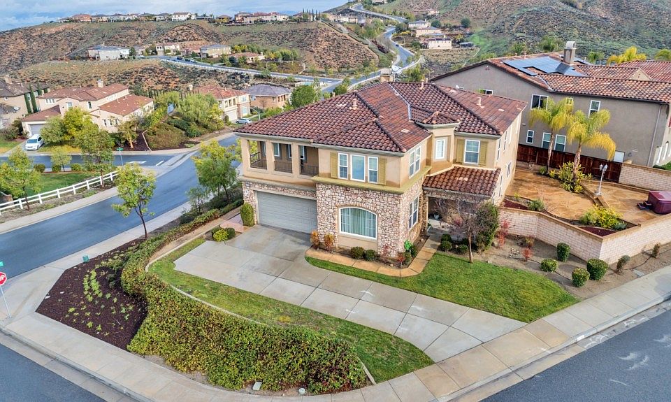 A Grand Entry with a Beautiful Curved Staircase greets you as you enter this Inviting Home! The Formal Living Room has a Fireplace for a Cozy feel. The Formal Dining is conveniently located off the Kitchen which the whole family can enjoy, featuring a Huge Island, lots of Counter Space, Upgraded Cabinets and Stainless Steel appliances. The connecting Family Room has a unique Pee-A-Boo fireplace into the Office/Den. Upstairs the Master Suite provides your own private Retreat with Pee-A-Boo Fireplace, a Private Balcony and Master Bathroom with a jetted Tub, walk-in shower and dual vanities. Too Many upgrades to list AND a 3 Car Garage! Come see for Yourself! Situated on 750 acres, Lake Hills Reserve offers its residents an ideal mountaintop locale removed from city life, yet close to the many cultural and educational amenities of Riverside County and shopping. Residents enjoy the expansive open space, the HIGHLY rated Lake Hills Elementary and a private residents club including a swimming pool, playground, park and an open-air fireplace pavilion. This is an ideal location for commuters as the 91 Freeway and Metrolink are both close by. Are you ready for the Lake Hills Reserve lifestyle?