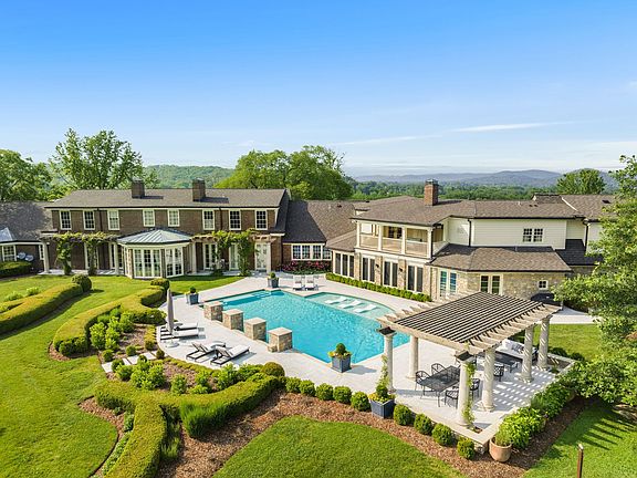 Welcome to Bella Vista! A 46 acre in-town estate with 10,862 sq ft Hampton's style main residence and an octagonal 1,215 sq ft "river house" guest retreat. Exquisite hilltop setting, pastoral land bordered on one side by Old Natchez Trace and on another by over 1,500 feet of river frontage. Regulation Pickleball court, batting cage, Geothermal heating and cooling, hospital grade air purification system, an entirely new backyard oasis with new pool, pool deck, lush landscaping. Floor-to-ceiling windows, French doors offer jaw dropping views from every room. Large, sunny kitchen overlooks the pool. Screened porch opens to the terrace, heated pool, lounging areas & fire pit. Pool house with full kitchen, changing rooms and full bath.