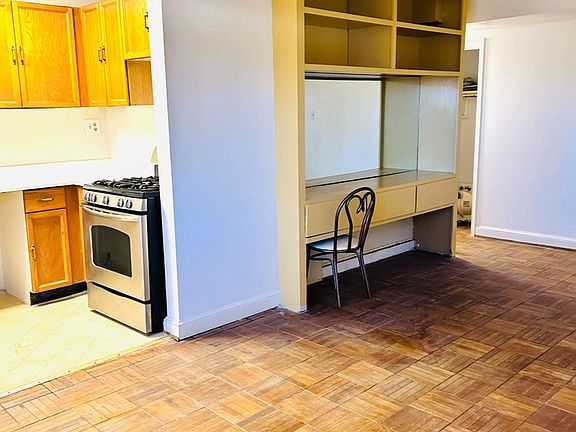 The studio features a spacious layout with hardwood floors throughout, creating a warm and inviting atmosphere. The kitchen is equipped with essential appliances, including a refrigerator and stove, and offers ample cabinet space. Multiple closets provide generous storage, and a private balcony is perfect for enjoying morning coffee or relaxing in the evening. Utilities are included in the rent, except for electricity.