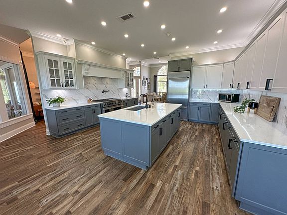 Three-car garageTons of storageLarge showerPecan orchardSaltwater poolHot tubStainless steel appliances