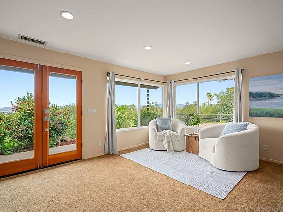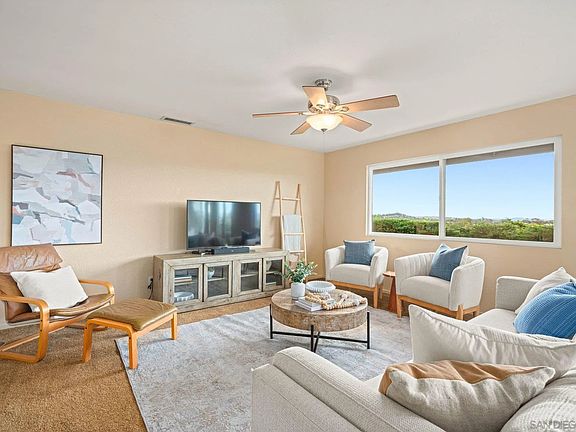 Discover your own private oasis. Perched on a stunning 1.19 acre view lot, on the desirable west side of Ramona. This home offers the perfect combination of elegance, functionality and breathtaking scenery. A private driveway winds up to this beautiful hilltop retreat where 180° unobstructed views create a spectacular backdrop for daily living. The thoughtfully designed open floor plan is ideal for modern living and entertaining. The heart of the home is the chef‘s kitchen, featuring a large center island, perfect for meal prep and casual dining. Energy efficiency meets modern comfort with owned solar and dual pane windows throughout. A spacious 3 car garage provides ample room for vehicles, storage and hobbies. Step outside to your own private resort! The Tranquil backyard is an entertainer's paradise, featuring a sparkling pool, covered patio for dining. Located on the west side of Ramona. You’ll enjoy peaceful country living while remaining conveniently close to local wineries, dining, shopping, and recreation. This is more than just a house, it’s a lifestyle. Don’t miss this rare opportunity to own a view property with resort style amenities in sought-after West Ramona!