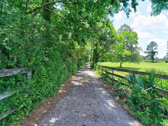 Wood burning fireplaceHorse barnChicken coopLarge pondVarious shedsTree-lined drivewayFront porch