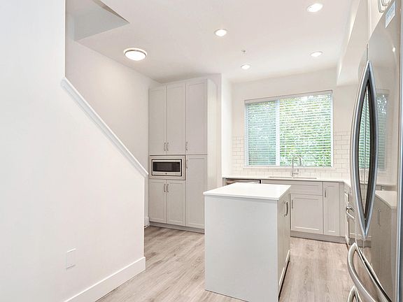 Welcome to GRANDVIEW by award winning builder Adera, where contemporary design meets natural beauty. This 4-bed, 3-bath townhome spans nearly 1,400 sq ft across four thoughtfully designed levels, offering both privacy and picturesque lush trees and a tranquil pond. The entry-level features a versatile bedroom or office space, a convenient powder room, and direct outdoor access. The open-concept main floor seamlessly connects the living and dining areas--ideal for entertaining or relaxing with family. Upstairs, you'll find two well-appointed bedrooms, a full bathroom, and a laundry room for added convenience. The top level is reserved for the spacious primary suite, complete with a private en-suite bathroom and a large deck. Residents of GRANDVIEW enjoy top-tier amenities, including a pool.