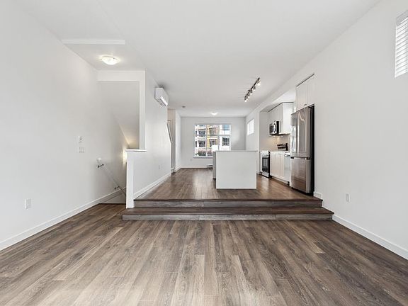 This newer 1,602 sq. ft. corner townhome offers 4 bedrooms and 3.5 bathrooms with a modern, family-friendly layout. The main floor features a bright open-concept living and dining area with 9' ceilings and a powder room for guests. The sleek kitchen boasts high-end appliances, stylish cabinetry, and plenty of space for family cooking and entertaining. Upstairs are three spacious bedrooms, including a primary suite with a double-vanity ensuite, plus a 3-piece bathroom for the other two bedrooms. The lower level includes a fourth bedroom and full bath-ideal for guests or an office. Two A/C units ensure comfort year-round. Enjoy a private sundeck, front yard, and a double attached garage for secure parking and storage.