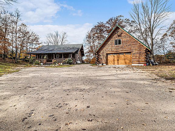 Discover true craftsmanship in this Amish-built log home set on 67 private wooded acres filled with trails, wildlife, and natural beauty. Offering nearly 3,000 sq ft of finished living space, this 4-bedroom, 2-bath retreat blends rustic charm with modern comfort. The custom kitchen features handcrafted cabinetry made by the owner, complemented by hardwood and tile floors throughout. Enjoy two wood-burning fireplaces, a full walkout basement with additional living area, and new vinyl windows, furnace, and central air (2024). Outdoor living shines with spacious front and rear decks for sunrise and sunset views. A 2-car garage with loft (built 2023) and a 32'x40' workshop with full basement provide exceptional utility. Ideal for hunters, hobby farmers, or anyone seeking peaceful seclusion just minutes from the Manistee River, Little Manistee River, and Lake Michigan.