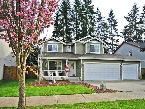 Enjoy easy, walkable living in pretty Yelm Terra with 3BR/2.5BA, 1816sqft graceful home and 3-car garage. Rich tile floors lead to 4th BR/den French doors & to open great room w/sweeping views of fenced backyard that is gated to open green space. Upgraded kitchen w/desk nook, tiled kitchen island, walk-in pantry & stainless appliances. Serene master suite w/split vanity 5pc bath/WIC. Delight in upstairs laundry, in-ground irrigation, security system, A/C, gas fireplace & neighborhood play areas.