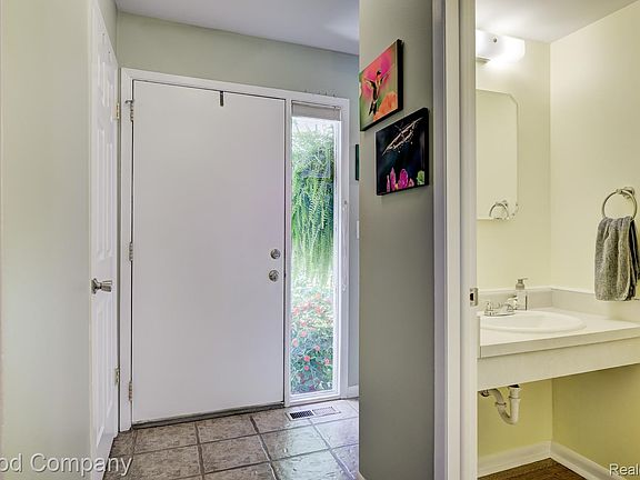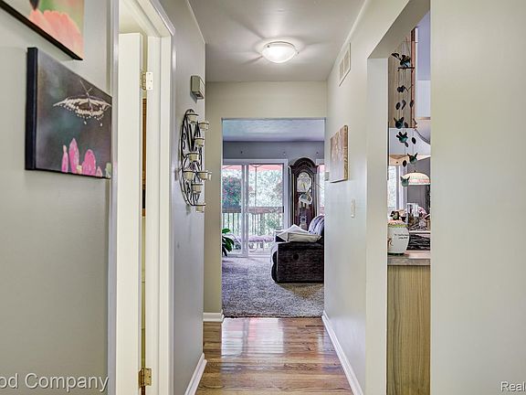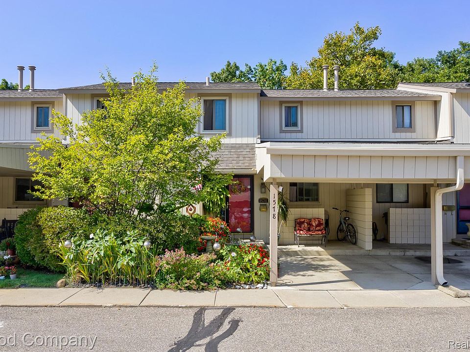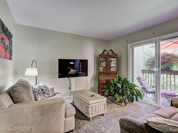 Lovely condo in Oakwood Park featuring a serene setting that backs to woods and the Clinton River, with a spacious layout and finished walk-out lower level. The home welcomes you with fantastic curb appeal, a charming garden, and convenient carport parking. Inside, a tile floor entry with a half bath leads to the bright open living and dining area, complete with sliding glass doors to a private balcony. The roomy kitchen offers hardwood floors, plenty of cabinet storage, and ample counter space. Upstairs, two bedrooms share a full bath, including a large primary with a walk-in closet and direct bath access. The lower level expands your living space with a cozy family room, highlighted by a striking stone fireplace, a second half bath, laundry, and a walk-out patio overlooking the lush green surroundings. New windows (2023) and new Furnace (2021). Enjoy the community house, pool, and peaceful river views just steps away. Welcome Home!