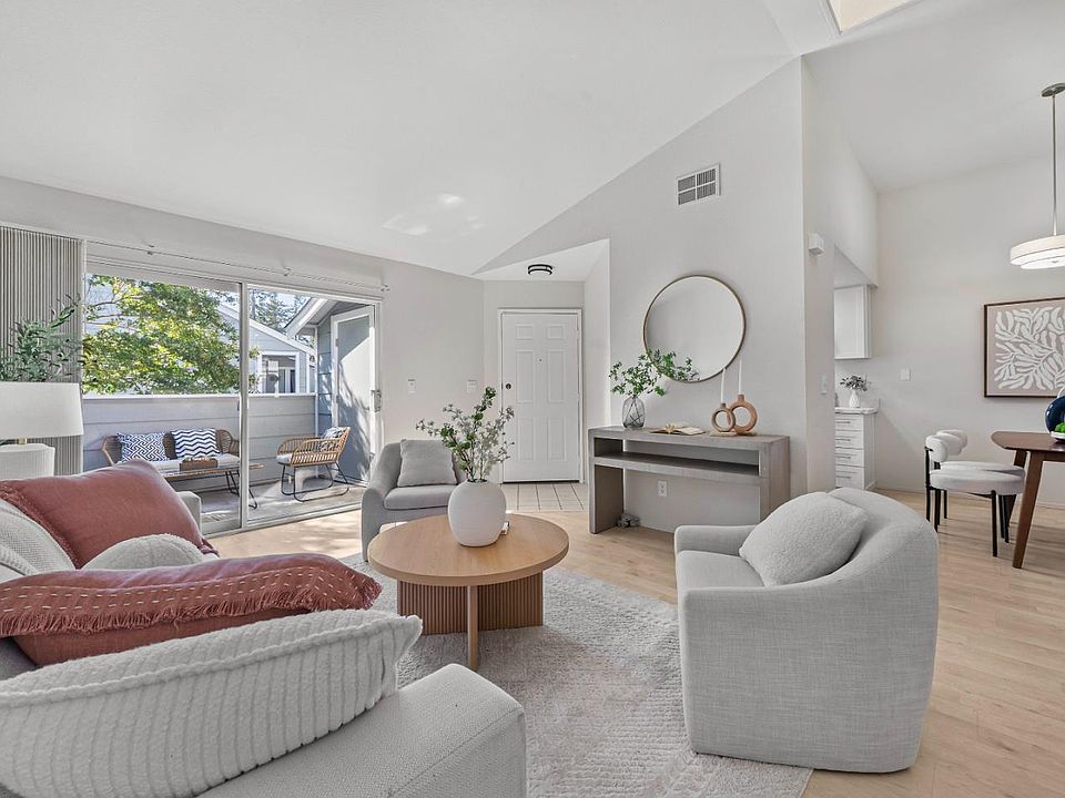 Discover this top floor unit charming 2-bedroom, 2-bathroom condo in Berryessa Area. This unit is situated on the 2nd floor and features a bright, inviting living room with vaulted ceilings, recessed lighting, and a skylight. A sliding glass door leads to a private balcony, perfect for relaxing. The gourmet kitchen boasts granite countertops, ample cabinetry, and appliances including an oven range, range hood, dishwasher, and refrigerator. The adjacent dining area is enhanced by a stylish pendant light, creating a warm and welcoming space. The hallway houses an in-unit washer and dryer, along with a bathroom featuring granite countertops and a shower-over-tub design. At the end of the hallway, the primary ensuite includes its own bathroom with granite countertops and a shower-over-tub. The second bedroom is conveniently located nearby. A detached one-car garage is positioned in front of the building for easy access. Community amenities include a pool and spa. Enjoy being just minutes from the BART station, a short commute to major tech companies, and close to shopping at Costco, Ranch 99, H-Mart, and Sprouts. With easy access to HWY 101, 680, and 880, this is an opportunity you wont want to miss!