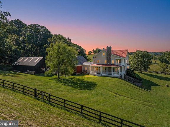 Nestled within the charming and historic area of Paeonian Springs less than a mile from the quaint Village of Waterford, this custom-designed farmhouse built in 2003 pays homage to the architectural aesthetics of the 1700s. Set on nearly 12 acres of picturesque landscape with stunning views in all directions, this residence seamlessly combines modern amenities with period-appropriate design, creating a harmonious blend of past and present. The farmhouse spans four levels, each meticulously crafted to capture the essence of colonial architecture. The exterior boasts a classic design with a wide, welcoming front porch. The interior showcases the craftsmanship of a bygone era while offering the comforts of contemporary living. The design carefully incorporates elements such as transom windows, hand-hewn cherry and oak flooring, thick wood beams and many other period-specific fixtures, transporting residents to a time when craftsmanship was an art form. With 5 bedrooms and five bathrooms across 4 levels, the farmhouse ensures ample space for both family and guests. Relax in the primary suite next to the wood-burning fireplace or take in the views from your private balcony. The 4th level guest suite is complete with large bedroom space, a living room, and an optional bath space with plumbing rough ins. The lower level is an entertainment area with a welcoming custom open pub-style bar, complete with mahogany bar tops, built in cabinetry, dishwasher, sink, beverage refrigerators and entertainment area set around a wood burning fireplace. Walk out to a large private paver patio with amazing beautiful stone retaining walls. The perfect space for grilling out with friends . Head inside for a movie in the media room.. there is also a full bath , an exercise room, and a storage room. For the car enthusiasts and hobbyists, this property offers a three-car attached garage with dog wash sink and electric car outlet. Plus a 4 car detached garage. Ascend to the level above the main garage, and you'll find a hidden gem with it’s own entry—an expansive attic space brimming with potential. Finish it to your liking, and it could become a grand office, a playroom, or a studio. office space. The Pennsylvania Amish pole barn is 24’ x 40’, for a car collections, a workshop, or even the potential for a guesthouse conversion. 4 doors / bays and side entry access. The barn ceiling was constructed with scissor trusses in order to accommodate a future second floor or lift. The metal roof and board and batten siding complement the main farmhouse Enjoy the glorious sunrises and sunsets while still being close to shopping, restaurants, schools, Dulles Airport and the Metro for events in Washington D.C. Experience the annual Waterford Fair every Fall, holiday parades, weekly farmers markets or take in music from local artists at one of the many wineries and breweries, just minutes away. This custom-designed farmhouse offers a rare opportunity to live in an area full of historical charm while enjoying the comforts of modern living. From the wrap-around porch to the design details, this home is a testament to the enduring allure of 18th-century architecture and the dream of rural living. With its period-correct design and luxurious amenities, it truly represents the best of both worlds—a timeless masterpiece in the countryside yet close to modern conveniences. Come see the stunning views from every window.