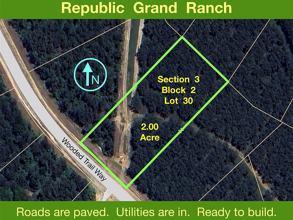 2.00 ACRES IN REPUBLIC GRAND RANCH > MATURE TREES > HUGE BUILDING AREA BACK OFF OF THE ROAD > LEVEL GROUND FOR EASY ACCESS AND BUILDING > PIPELINE CUTS ACROSS JUST THE FRONT CORNER > DOES NOT RESTRICT ACCESS OR SPACIOUS BUILDING SITE OPTIONS > Located on the outskirts of Willis with great schools and nearby shopping. Large lot wooded community with gentle rolling hills. Peaceful privacy. You will never be crowded by neighbors. Republic Grand Ranch is a large lot, wooded community in the rolling hills. Country lifestyle for your custom forever home. Trees, paved roads, water, HIGH SPEED fiber optic internet & underground power through out. Covered pavilions, parks, ponds, playgrounds, BBQ areas. Minutes from shopping, dining, schools, hospitals, and entertainment. Low taxes - No MUD tax. Average elevation is 400’ ASL. Plenty of greenspace and trails for hiking, biking and horseback riding.