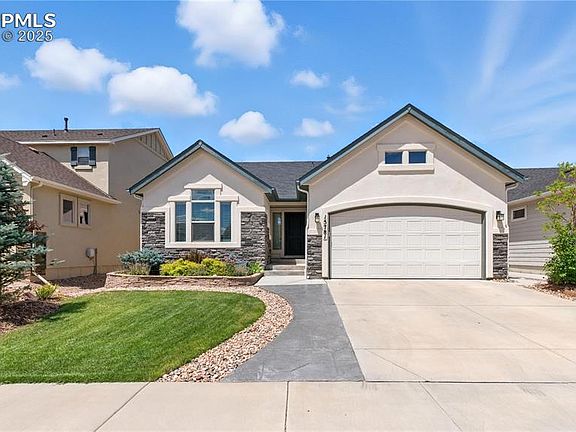 Nestled in the picturesque community of Monument, Colorado, this exquisite residence embodies elegance and modern luxury. Offering 3,345 square feet of thoughtfully designed living space, the home features five spacious bedrooms and four bathrooms, including two private en suites. The primary suite is conveniently located on the main level, while a second en suite in the finished basement provides ideal accommodations for guests or extended family. Step inside to an open-concept layout with vaulted ceilings that create a bright and inviting atmosphere. The gourmet kitchen stands as the heart of the home, complete with a sleek quartz center island and state-of-the-art appliances. Expansive living areas flow seamlessly for entertaining, while the fully finished basement includes a bespoke wet bar, versatile game room, and built-in surround sound system for an immersive experience. Outdoors, the property backs to a berm for added privacy and features beautifully landscaped surroundings on a 5,597 square foot lot. Residents enjoy private lake access with paddle-boarding, kayaking, and scenic trails, creating a retreat-like lifestyle just steps from home. This home is more than a place to live—it’s a sanctuary. Experience refined living with scenic views and unmatched privacy. Schedule your private tour today and discover timeless sophistication in Monument.